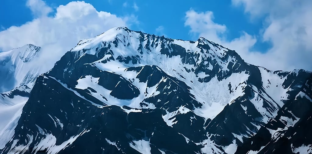 In the remote heights of the Indo-Tibet border, where the ancient trade routes of the Himalayas meet the sacred geography of Lord Shiva's realm, stands Om Parvat - a mountain that bears upon its snow-laden face the most sacred symbol in Hindu cosmology. At 5,590 meters above sea level, this extraordinary peak displays a naturally formed "Om" (ॐ) symbol, created by the precise deposition of snow against its dark rocky surface.